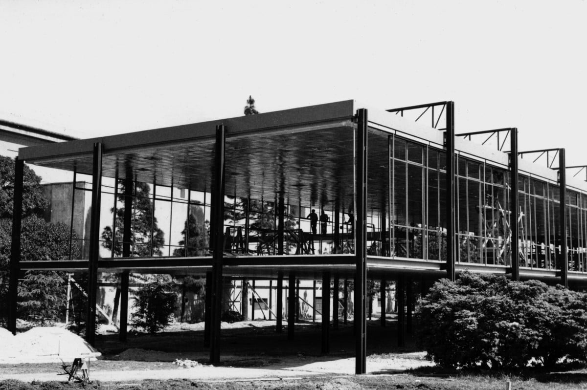 In the original project, the architect Samuel Oliver, secretary of the museum, also acted as an advisor. The volume references the work of Mies van der Rohe, while expressing the referential relationships between Jannello’s way of projecting and the main discussion topics that defined the discipline in that era: Concrete Art and ephemeral architecture as a laboratory of technological, formal and spatial innovation. In the design of the pavilion, the constructive approach had primacy, an adequate structural solution that considered both a quick assembly and the availability of materials produced by the local industry.