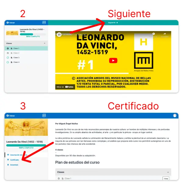 El certificado se emite luego de la visualización del 100% de las clases. Una vez completado este paso, se habilitará automáticamente la descarga de tu certificado en formato pdf.