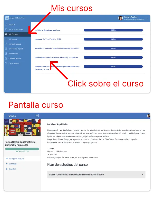 Si completaste la compra del curso o taller y abonaste el arancel, tu inscripción se realizó correctamente.