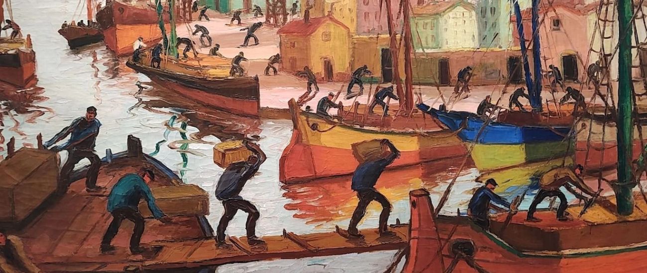 Lejos de una mirada idealizada, estas imágenes construyen una épica de lo cotidiano, donde el trabajo se vuelve protagonista y el color, vibrante, encendido, casi táctil, transforma la dureza del paisaje en una experiencia visual potente. La Boca aparece así como un territorio donde el oficio y la pintura se entrelazan, dando lugar a una identidad artística singular dentro del arte argentino.